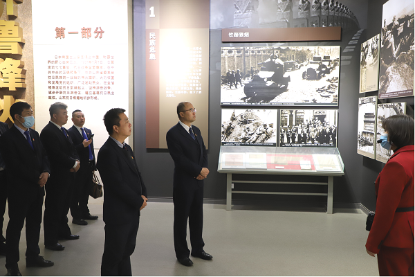 在孟良崮革命紀(jì)念館內(nèi),講解員通過一段段史實(shí)故事帶領(lǐng)全員重溫華東野戰(zhàn)軍浴血奮戰(zhàn)的崢嶸歲月。全體人員切實(shí)感受到戰(zhàn)爭時(shí)期無數(shù)仁人志士和老革命家胸懷理想、為國捐軀的革命情懷,更加堅(jiān)定了心向黨、行為黨、忠于黨的決心。