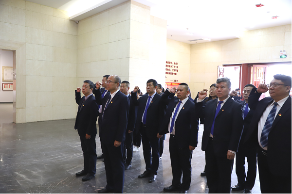 在八路軍115師司令部舊址,五峰山公司黨員干部深受沂蒙精神的感召,高舉拳頭重溫入黨誓詞,齊聲宣誓中傳遞著黨員踐行使命擔(dān)當(dāng)、立足崗位奉獻(xiàn)的如磐初心。