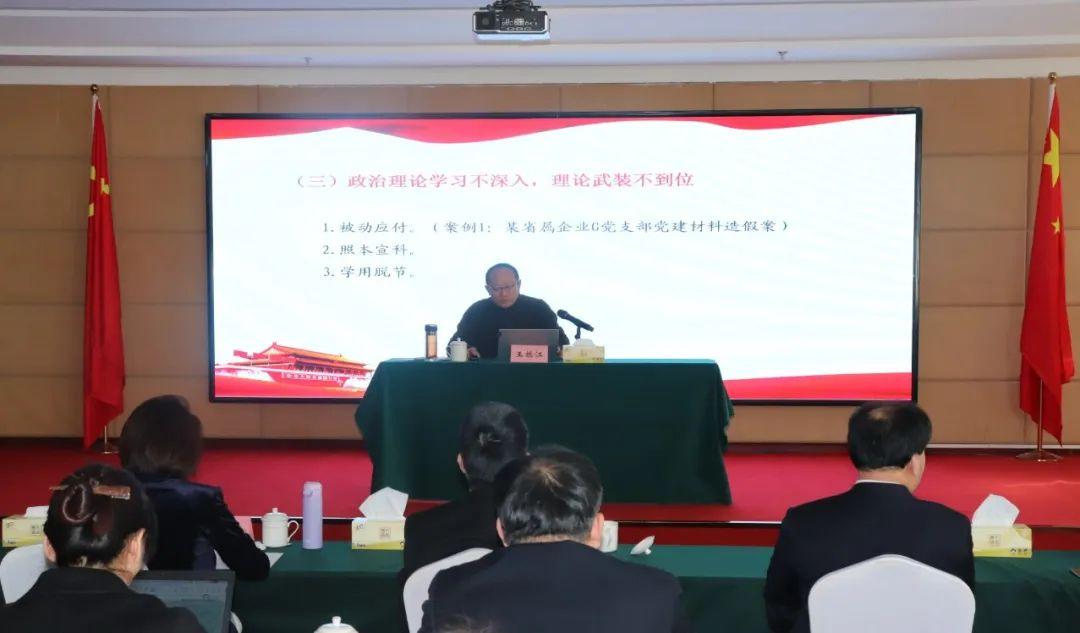 王振江同志通報了近年來國資國企系統(tǒng)和集團(tuán)黨風(fēng)廉政建設(shè)和反腐敗工作基本情況,分析了新時代黨風(fēng)廉政建設(shè)面臨的形勢任務(wù)和要求,并結(jié)合企業(yè)實(shí)際,以“扣好廉潔從業(yè)第一??圩印睘橹黝},運(yùn)用大量典型事例,深刻剖析了國有企業(yè)年輕干部違紀(jì)違法案件特征及成因,從組織和個人兩個層面,對加強(qiáng)年輕干部教育監(jiān)督管理提出了七個方面具體要求,引導(dǎo)年輕干部堅(jiān)定理想信念,正確對待權(quán)力,時刻自重自省,守牢廉潔從業(yè)底線,能干事、想干事、干成事、不出事。