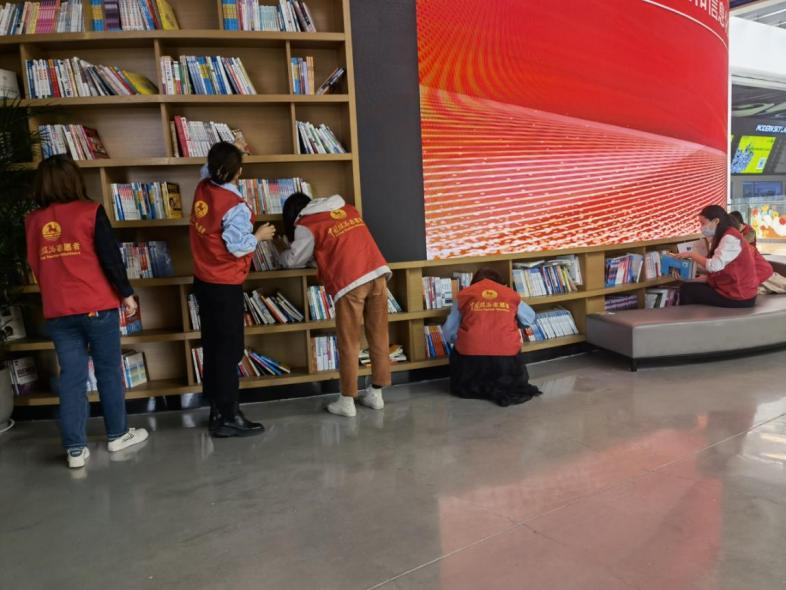 圖片正值“世界讀書日”,為增強(qiáng)主動服務(wù)意識,黨員干部們在讀書分享結(jié)束后自發(fā)開展了志愿服務(wù)活動,明確分工、相互配合,將新到圖書按規(guī)定流程分類上架,并將散亂書籍按類別和編號進(jìn)行排查整理放回對應(yīng)的位置,最后進(jìn)行了全方位打掃,為讀書愛好者們創(chuàng)造了干凈舒適的閱讀環(huán)境。