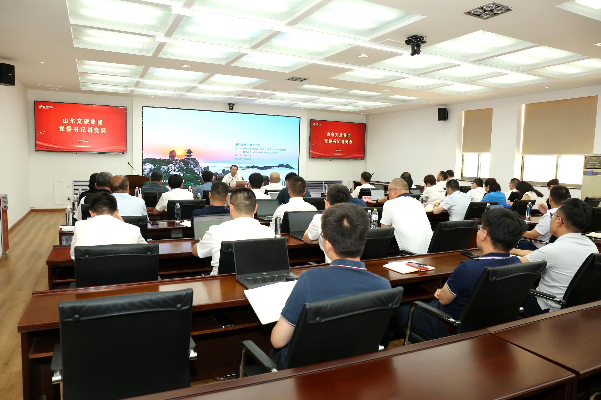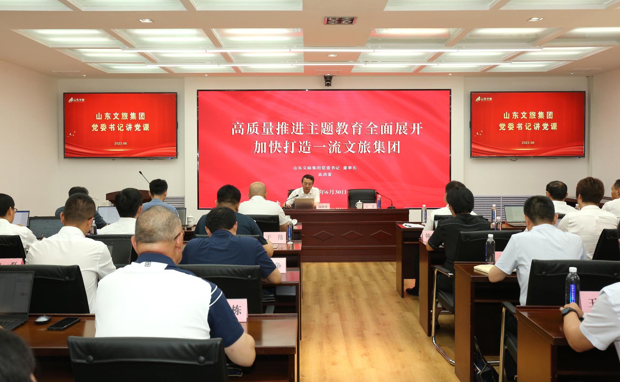 為扎實推進(jìn)學(xué)習(xí)貫徹習(xí)近平新時代中國特色社會主義思想主題教育,6月30日,集團(tuán)黨委書記、董事長高洪雷以“高質(zhì)量推進(jìn)主題教育全面展開 加快打造一流文旅集團(tuán)”為主題,在集團(tuán)黨委主題教育讀書班上作專題黨課,集團(tuán)黨委副書記、總經(jīng)理丁藝主持。