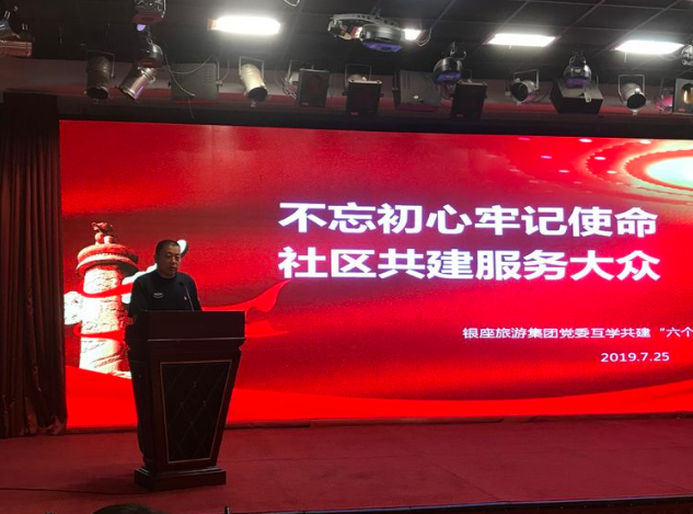 為貫徹落實(shí)開(kāi)展不忘初心,牢記使命,加強(qiáng)棋盤(pán)街社區(qū)黨委與山東銀座旅游集團(tuán)黨委組織互助共建,棋盤(pán)街社區(qū)黨委聯(lián)合山東銀座旅游集團(tuán)黨委于2019年7月25日下午,開(kāi)展互學(xué)共建“六個(gè)一”交流活動(dòng),并簽訂“共建協(xié)議書(shū)”。