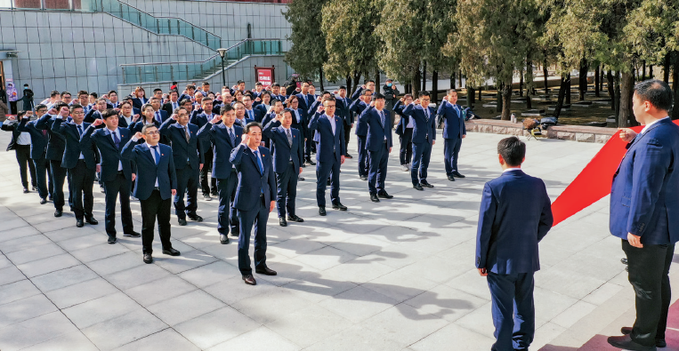 山鄉(xiāng)集團(tuán)黨委組織黨員到孟良崮戰(zhàn)役紀(jì)念館進(jìn)行黨性教育學(xué)習(xí),重溫入黨誓詞。