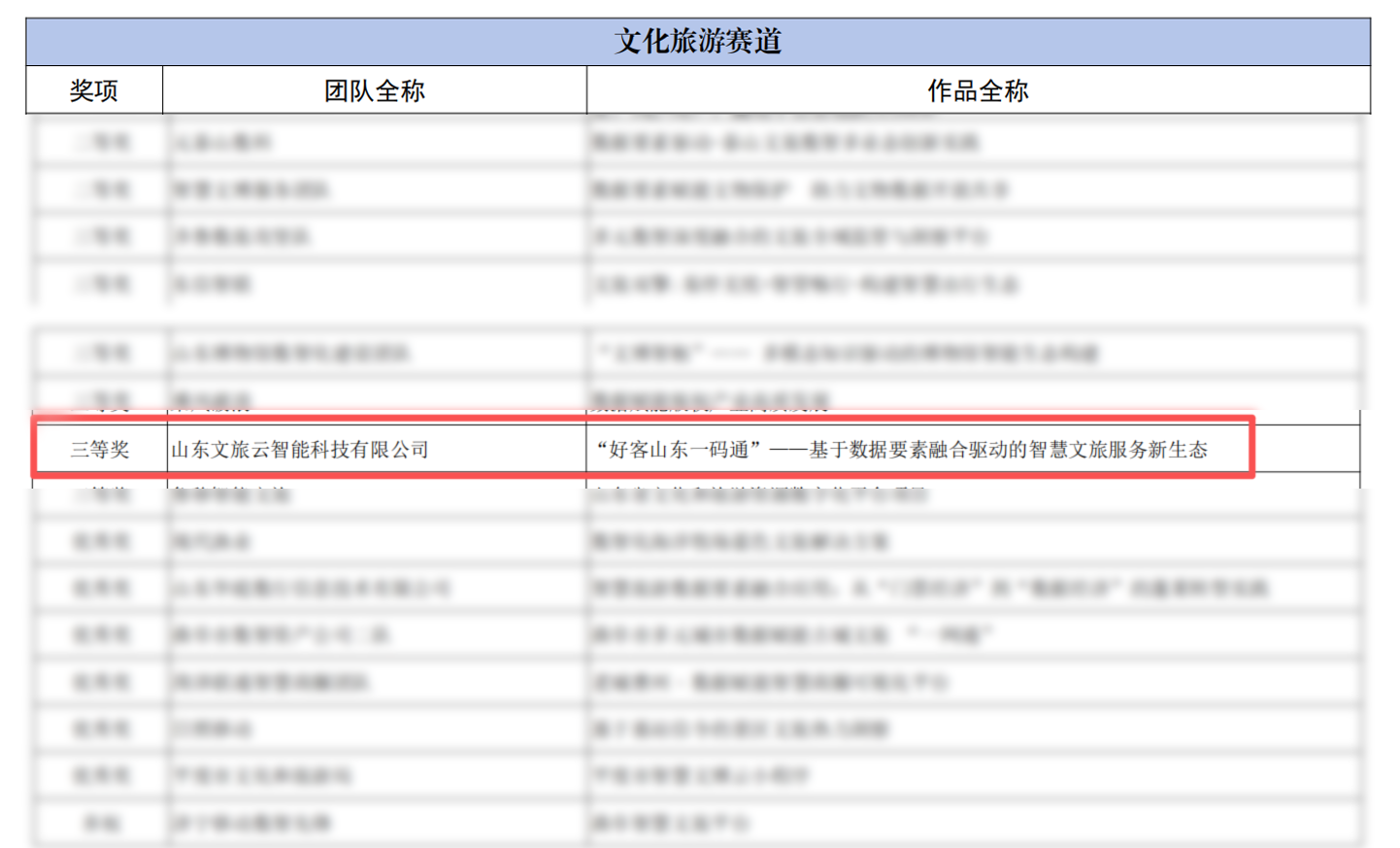 近日,2025年“數(shù)據(jù)要素×”大賽山東分賽決賽在濟南成功舉辦。山東文旅云智能科技有限公司參賽團隊?wèi){借作品《好客山東一碼通——基于數(shù)據(jù)要素融合驅(qū)動的智慧文旅服務(wù)新生態(tài)》,榮獲文化旅游賽道三等獎。