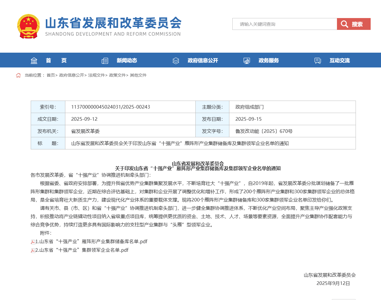“十強(qiáng)產(chǎn)業(yè)”涉及山東的主導(dǎo)產(chǎn)業(yè)、優(yōu)勢(shì)產(chǎn)業(yè)、潛力產(chǎn)業(yè),代表了先進(jìn)生產(chǎn)力的發(fā)展方向。圍繞“十強(qiáng)產(chǎn)業(yè)”發(fā)展目標(biāo),通過動(dòng)態(tài)管理、精準(zhǔn)篩選,全省逐步構(gòu)建起層次清晰、協(xié)同聯(lián)動(dòng)的產(chǎn)業(yè)發(fā)展體系,目前形成了200個(gè)雁陣形產(chǎn)業(yè)集群和300家集群領(lǐng)軍企業(yè)的總體格局,是全省培育壯大新質(zhì)生產(chǎn)力,建設(shè)現(xiàn)代化產(chǎn)業(yè)體系的重要載體支撐。