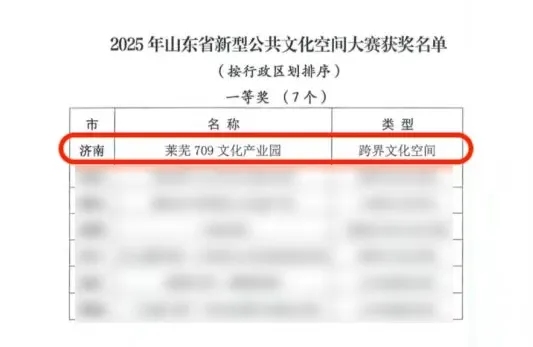 近日,山東省文化和旅游廳公布了2025年山東省新型公共文化空間大賽獲獎(jiǎng)名單,山東文旅山鄉(xiāng)集團(tuán)運(yùn)營(yíng)打造的709文化產(chǎn)業(yè)園榮獲一等獎(jiǎng)。