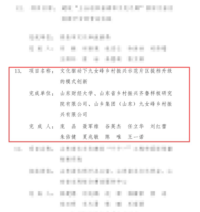 近日,山東省人民政府公布第七屆山東省文化創(chuàng)新獎獲獎項目名單。由山東文旅山鄉(xiāng)集團所屬企業(yè)聯(lián)合山東財經(jīng)大學申報的《文化驅(qū)動下九女峰鄉(xiāng)村振興示范片區(qū)提檔升級的模式創(chuàng)新》獲獎。