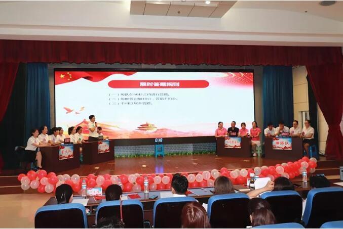 比賽中觀眾也不甘示弱,積極踴躍地舉手答題,條理清晰的回答得到了所有人的肯定。現(xiàn)場(chǎng)的啦啦隊(duì)也非常給力,喊出加油口號(hào)將賽場(chǎng)氛圍推向頂點(diǎn),整個(gè)比賽過(guò)程緊張有序、競(jìng)爭(zhēng)激烈。臺(tái)上臺(tái)下的默契配合,向大家展示了新時(shí)代黨員教師們的信心和風(fēng)采。