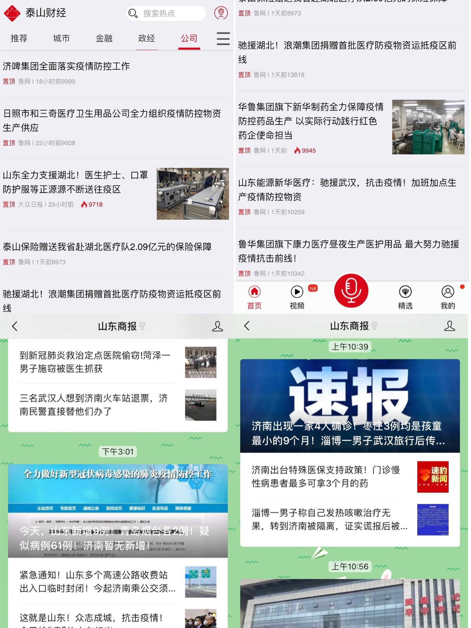 魯商傳媒旗下各新媒體終端還主動(dòng)聚焦節(jié)日市場供應(yīng),聚焦國企擔(dān)當(dāng)。山東商報(bào)和魯網(wǎng)原創(chuàng)報(bào)道了魯商集團(tuán)保節(jié)日市場價(jià)穩(wěn)量足、濟(jì)南投放首批儲備白菜、山航專機(jī)運(yùn)送護(hù)目鏡等重要新聞。《總理的承諾,我們來兌現(xiàn)!援助武漢,山東“悶聲”干大事!》和《落實(shí)總理承諾,爭分奪秒8小時(shí)》體現(xiàn)了深度原創(chuàng)與整合報(bào)道能力。此外,還發(fā)揮山東商報(bào)和魯網(wǎng)的財(cái)經(jīng)報(bào)道優(yōu)勢,主動(dòng)對接相關(guān)企業(yè),在疫情專題、泰山財(cái)經(jīng)客戶端和魯網(wǎng)“山東國資”頻道及時(shí)發(fā)布山東國資系統(tǒng)阻擊疫情的相關(guān)新聞,對魯商集團(tuán)、山東能源、華魯集團(tuán)等山東國企在關(guān)鍵時(shí)期的責(zé)任擔(dān)當(dāng)做了充分報(bào)道。