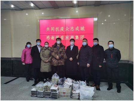 2月14日傍晚,小雨淅瀝,寒風瑟瑟。濟南千佛山街道辦事處和棋盤街社區(qū)防疫點工作人員的心里卻升騰起濃濃暖意。辣椒炒肉、洋蔥炒雞蛋、土豆絲、熱湯,水果……“平時我們只能吃泡面,現(xiàn)在能吃到星級酒店的飯菜,心里感覺很溫暖,為銀座旅游集團點贊!”