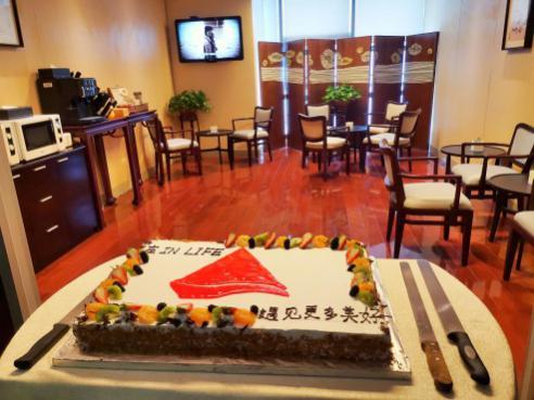 走進去的一剎那,大家都幸福地尖叫起來。陽光明媚、樂聲悠揚,寬敞通透的空間,一盆盆綠植展示著盎然的春機,小巧實用的咖啡機、飲水機、微波爐一應(yīng)俱全,優(yōu)雅的風(fēng)景畫仿佛也散發(fā)著大自然的氣息。在這里,您可以隨時來喝一杯美式咖啡,一杯紅茶,一杯冰凍的飲品,或者,您自備的枸杞紅棗湯。美味的自制便當(dāng),亦可以在這里加溫分享。