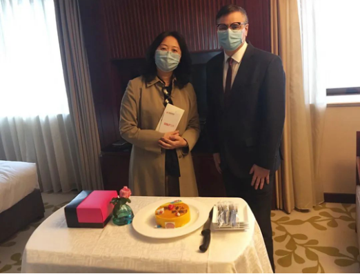 醫(yī)師劉女士來(lái)到索菲特銀座大飯店辦理免費(fèi)房入住,細(xì)心的前臺(tái)員工在登記身份證信息時(shí),發(fā)現(xiàn)5月12日是劉女士的生日,于是一份驚喜開(kāi)始醞釀。“叮咚”“Bonjour 您好”,當(dāng)劉女士打開(kāi)房門(mén),工作人員唱著生日歌,推著定制生日蛋糕徐徐而進(jìn),酒店總經(jīng)理將鮮花與賀卡送到她的手中,劉女士瞬間熱淚盈眶,激動(dòng)地說(shuō):自己已多年沒(méi)有過(guò)生日了,在今天這個(gè)特殊的日子里,感受到了濃濃的關(guān)愛(ài)與祝福,感謝酒店創(chuàng)造的驚喜,也感謝銀座旅游集團(tuán)對(duì)醫(yī)護(hù)工作者的關(guān)心和用心。
