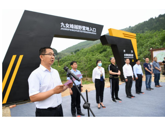 山東省汽車摩托車聯(lián)合會秘書長胡慶節(jié),泰安市岱岳區(qū)道朗鎮(zhèn)黨委副書記、鎮(zhèn)長李安軍,區(qū)教體局黨組成員段文強(qiáng),越野e族山東大隊泰山分隊動酷基地總經(jīng)理毛東升,泰安力虎總經(jīng)理助理王蕾,山東省鄉(xiāng)村振興齊魯樣板研究院副院長聶軍維,魯商九女峰(泰安)鄉(xiāng)村振興有限公司總經(jīng)理于在武共同為營地剪彩。