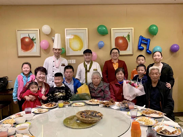 在重陽節(jié)來臨之際,泉城大酒店邀請一線優(yōu)秀員工代表的父母在上善坊共享團圓。房務(wù)部趙曰南和餐飲部廖鵬的父母年事已高,每逢節(jié)假日,又都是酒店經(jīng)營最繁忙的時候,他們忙碌在一線崗位,“?;丶铱纯础背闪俗钌莩薜男脑浮=裉?,在酒店的邀請下,全家歡聚一堂其樂融融,餐飲部的同事精心為他們準(zhǔn)備了可口的飯菜,并送上美麗的鮮花,感謝他們對酒店工作的理解和支持,祝福老人們健康長壽,幸福久久。