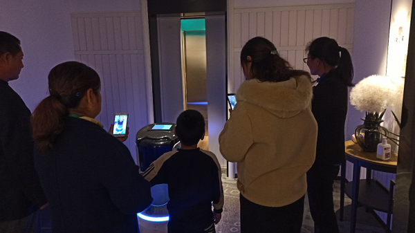 活動中,店長帶領(lǐng)父母們參觀酒店,了解員工拼搏奮戰(zhàn)的地方,展示公司產(chǎn)品升級換代的新成果和廣闊的發(fā)展前景。在酒店智能客房中,店長耐心介紹著智能客控設(shè)備的便捷操作。機器人服務(wù)員的“聰明、貼心”立刻吸引了大家的眼球,大家紛紛拿出手機拍照錄像,現(xiàn)場響起一片贊嘆聲。