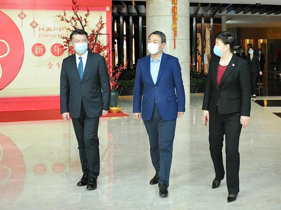 2月11日(農(nóng)歷大年三十)上午,魯商集團黨委書記、董事長兼國欣文旅黨委書記、董事長高洪雷,來到濟南索菲特銀座大飯店看望慰問堅守在工作崗位的一線干部職工,代表集團向廣大干部職工致以節(jié)日問候和新春祝福,同時實地調(diào)研春節(jié)期間民生商品市場供應(yīng)、便民消費服務(wù)和疫情防控措施落實情況。國欣文旅首席客戶官,山東文旅酒店集團黨委書記、董事長李浩陪同。