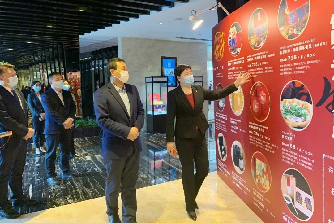 高洪雷深入察看酒店大堂餐吧、49樓銀頂旋轉(zhuǎn)餐廳等,了解酒店特色年夜飯銷售情況,聽取了酒店負責(zé)人有關(guān)情況匯報,并詳細詢問商品供應(yīng)、貨源渠道、價格變動和商品追溯等情況。高洪雷同時指出,春節(jié)期間要確保商品供應(yīng)充足、品種豐富多樣、質(zhì)量可靠放心、價格穩(wěn)定公道。要切實將疫情防控抓實抓細抓到位,確保廣大群眾度過一個歡樂祥和的春節(jié)。