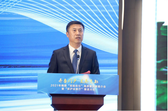 3月16日上午,“齊魯門戶 醫(yī)養(yǎng)之都”2021年槐蔭“雙招雙引”高質量發(fā)展推介會暨“京滬會客廳”推進大會在濟南市槐蔭區(qū)京滬會客廳舉行。山東省國欣文化旅游發(fā)展集團有限公司(簡稱“國欣文旅”)黨委副書記、總經理丁藝出席活動并致辭。大會由槐蔭區(qū)委副書記、區(qū)政府黨組書記孫常建主持并介紹領導出席情況?;笔a區(qū)委書記李國強致辭。