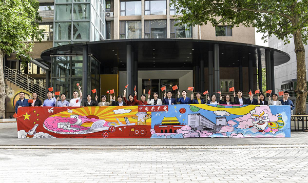 整幅畫卷長10米,有氣勢磅礴的天安門廣場、威武雄壯的萬里長城、迎風招展的五星紅旗以及鄉(xiāng)發(fā)展集團鄉(xiāng)村振興項目的標志性建筑——九女峰書房、山6創(chuàng)意園等形象,并配以冉冉升起的太陽、中國醒獅、五彩祥云等元素,畫面和諧有力、宏偉壯觀,展現(xiàn)了在中國共產(chǎn)黨領導下波瀾壯闊、振奮人心的鄉(xiāng)村振興事業(yè)。