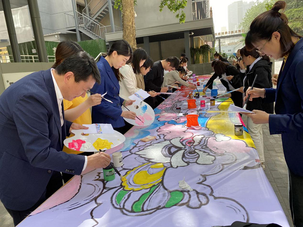 活動現(xiàn)場,大家在專業(yè)老師的指導下,用五彩斑斕的畫筆勾勒藍天白云和壯美景觀,抒寫對黨和國家的祝福,對鄉(xiāng)村振興事業(yè)蒸蒸日上的期盼。在大家的精心繪制下,一幅絢麗多彩、蓬勃向上的“江山如此多嬌”畫卷呈現(xiàn)在大家眼前,吸引園區(qū)參觀人員駐足欣賞,成為了園區(qū)一道亮麗的風景。