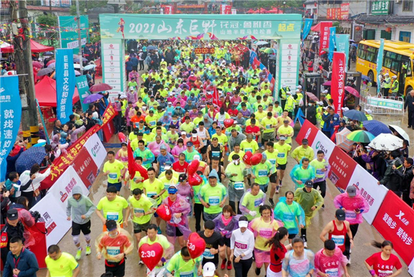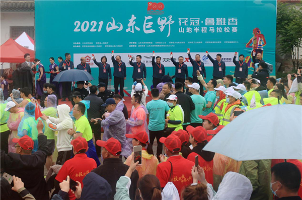 五月金山風景好,運動健身正當時。5月16日上午8點,由中共巨野縣委、縣政府主辦,山東文旅傳媒集團、巨野縣總工會、文化和旅游局、教育和體育局、衛(wèi)生健康局、融媒體中心承辦,巨野縣核桃園鎮(zhèn)政府、獨山鎮(zhèn)政府協(xié)辦,山東文旅傳媒集團速豹體育運營的2021山東巨野山地半程馬拉松賽在蒙蒙細雨中激情開跑,山東文旅傳媒集團黨委書記、董事長龐道鋒與巨野縣委書記王昌華、縣長王東共同為賽事“鳴笛”。