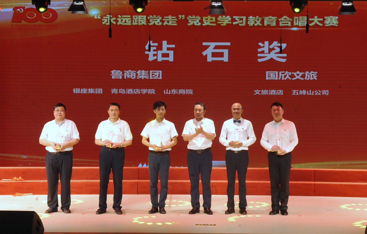 為慶祝中國共產黨成立100周年,6月23日,國欣文旅舉行 “兩優(yōu)一先”表彰大會暨“永遠跟黨走”黨史學習教育合唱總決賽。魯商集團黨委書記、董事長兼國欣文旅黨委書記、董事長高洪雷出席活動并講話。