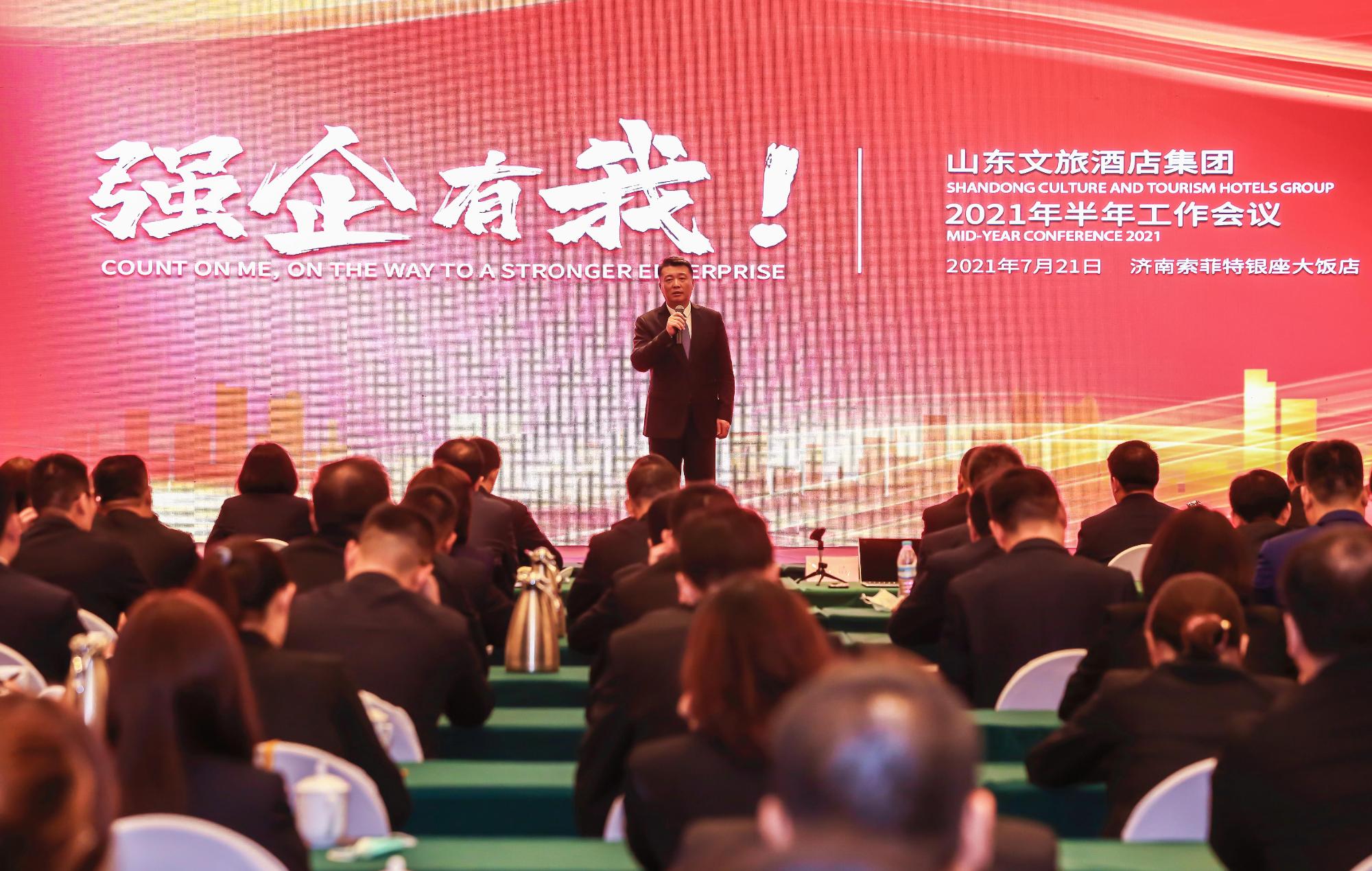 7月21日,山東文旅酒店集團以“強企有我”為主題召開2021年半年工作會議,傳達學習魯商集團黨委書記、董事長兼國欣文旅黨委書記、董事長高洪雷在國欣文旅2021年半年經(jīng)濟工作會議上的講話精神,總結(jié)2021年上半年工作情況,分析研判市場形勢及趨勢,部署下半年重點任務(wù)。國欣文旅首席客戶官,山東文旅酒店集團黨委書記、董事長李浩講話。