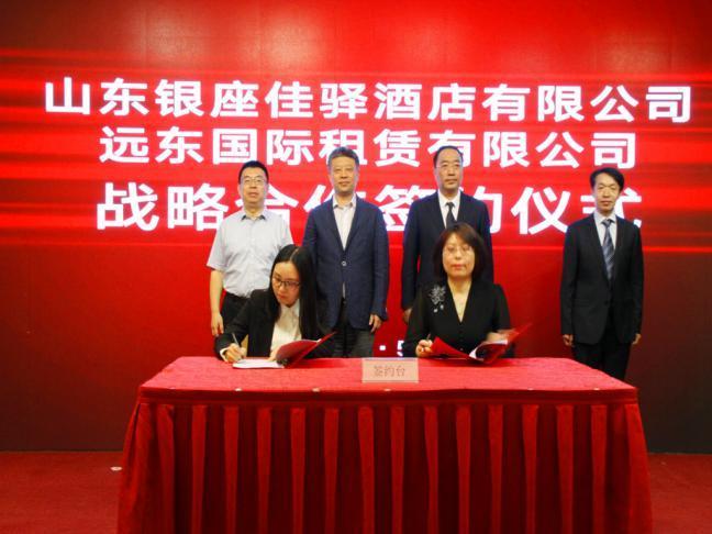 5月30日上午,泉城大酒店,銀座佳驛投資加盟招商會現場,首批8家文度酒店合作伙伴聯(lián)合簽約,銀座佳驛與遠東國際租賃戰(zhàn)略合作簽約。