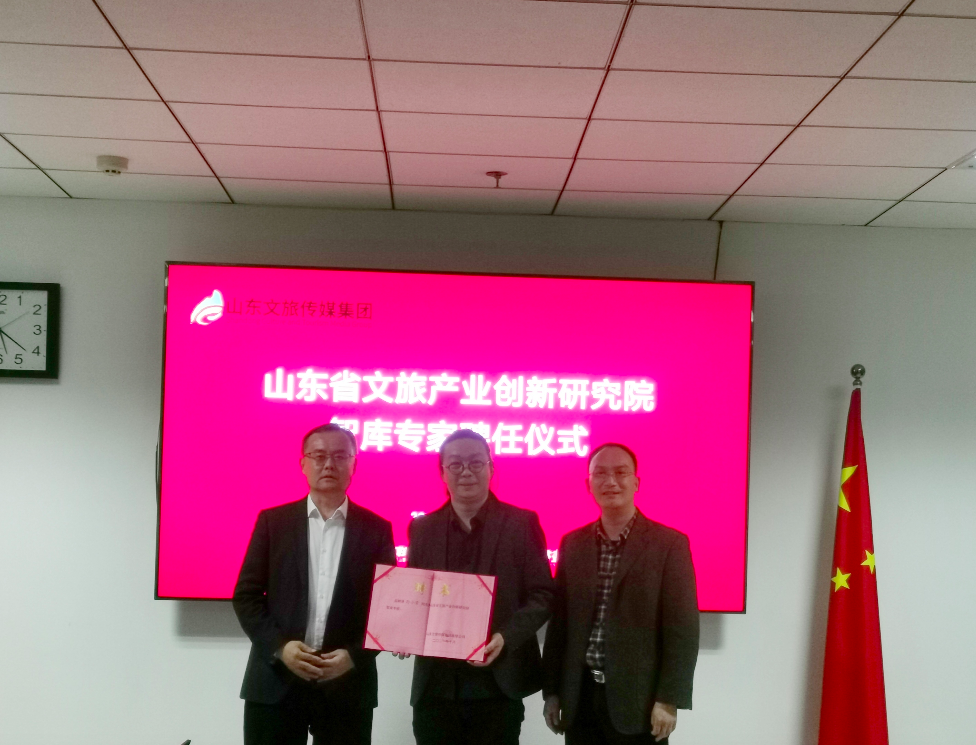 座談會后舉行了山東省文旅產(chǎn)業(yè)創(chuàng)新研究院智庫專家聘任儀式,龐道鋒為孫小榮頒發(fā)聘書。