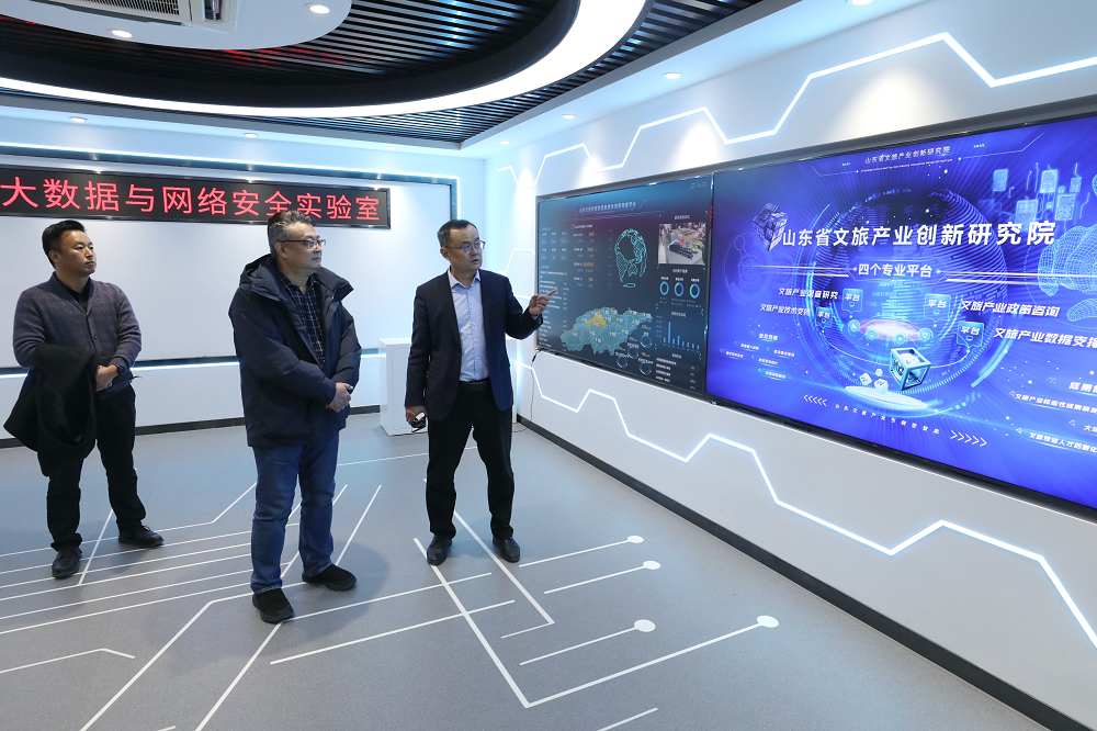 傅煜冬一行隨后來(lái)到山東文旅傳媒集團(tuán)及山東省文旅產(chǎn)業(yè)創(chuàng)新研究院,參觀了主要業(yè)務(wù)部位。