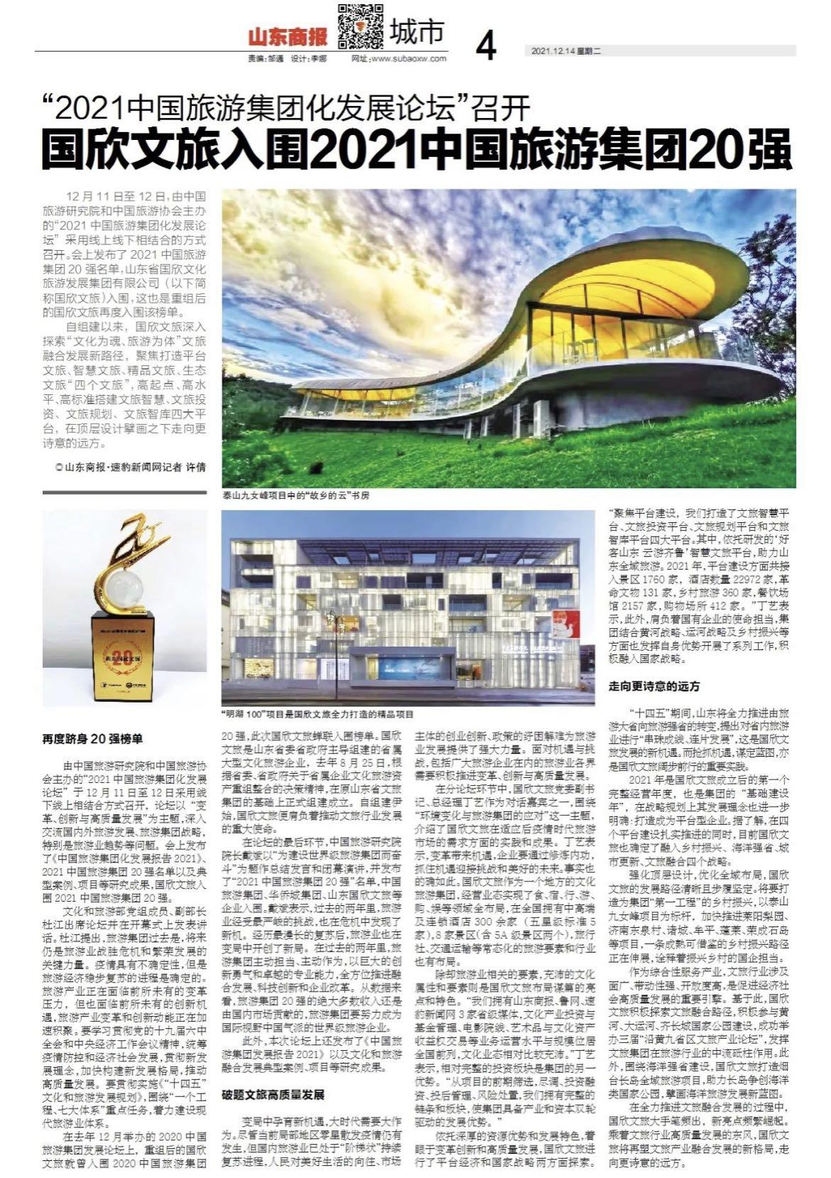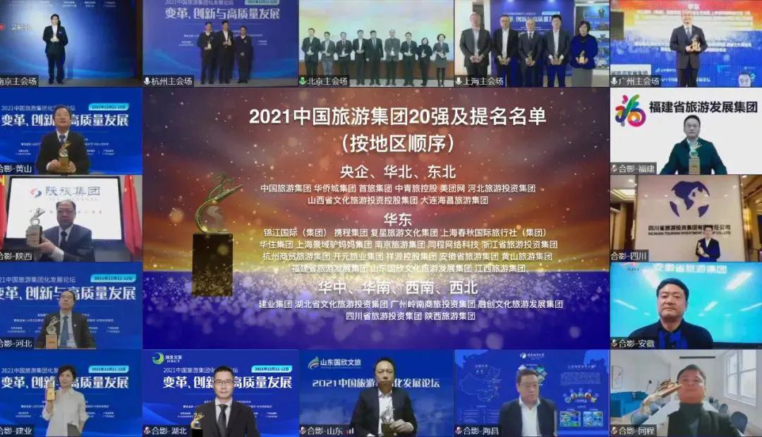 12月11日至12日,中國旅游研究院、中國旅游協(xié)會主辦的“2021中國旅游集團化發(fā)展論壇”以線上線下相結(jié)合的形式舉辦,發(fā)布了《中國旅游集團化發(fā)展報告2021》、2021中國旅游集團20強及提名名單,以及典型案例、項目等研究成果。山東省國欣文化旅游發(fā)展集團有限公司(簡稱“國欣文旅”)成功入選“2021中國旅游集團20強”,這是國欣文旅2020年8月成立以來第二次入選。文化和旅游部黨組成員、副部長杜江出席論壇并講話。國欣文旅黨委副書記、總經(jīng)理丁藝通過線上方式參會并在“圓桌對話”環(huán)節(jié)交流發(fā)言。