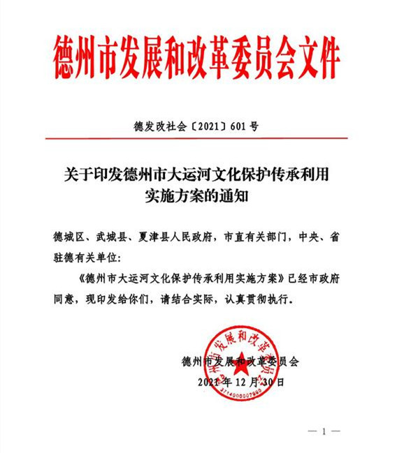 1月11日,山東文旅集團(tuán)旗下省旅游設(shè)計(jì)院編制的《德州市大運(yùn)河文化保護(hù)傳承利用實(shí)施方案》(簡(jiǎn)稱“《方案》”)經(jīng)德州市政府同意,由德州市發(fā)改委正式印發(fā)。省旅游設(shè)計(jì)院助力德州市在山東省運(yùn)河沿線地級(jí)市中率先出臺(tái)實(shí)施方案,標(biāo)志著大運(yùn)河國(guó)家文化公園(山東德州)和德州市大運(yùn)河文化帶建設(shè)進(jìn)入快車(chē)道。