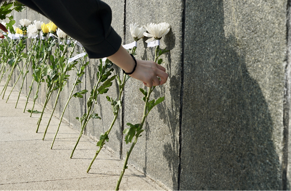 春風(fēng)拂去傷痛,遙寄吾之哀思。4月5日,云游齊魯智慧文旅平臺工作人員帶著數(shù)百網(wǎng)友的心意,手持鮮花,佩戴口罩,以鞠躬、獻花、擦拭之儀,為英烈獻上春日之花。獻花過程中,不時有周邊前來追思的群眾主動加入獻花隊伍,讓英烈的精神得以傳承。