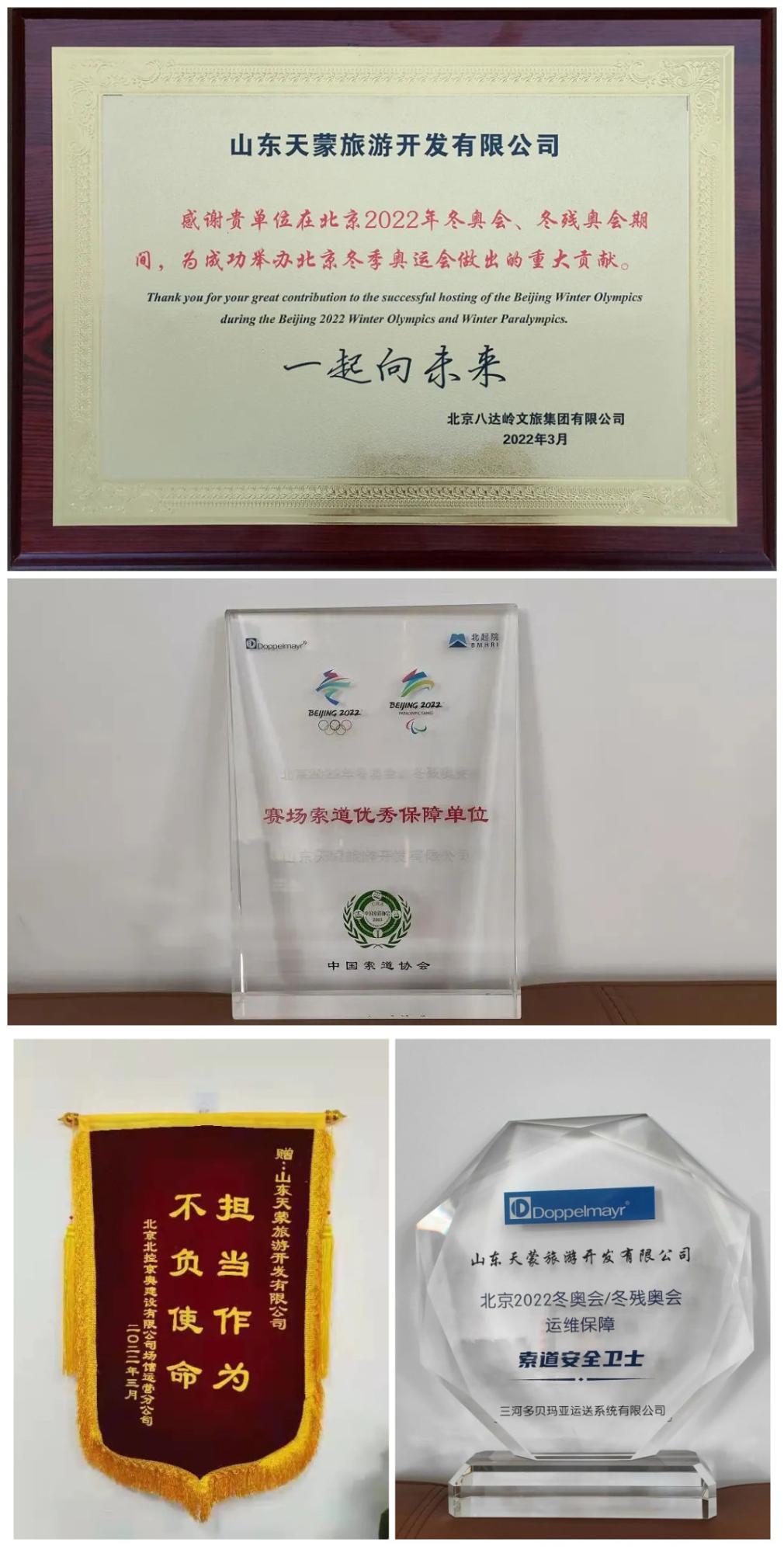 與冰雪相會、與冬奧結(jié)緣,山東天蒙旅游開發(fā)有限公司有幸參與2022年北京冬奧運、冬殘奧會賽場索道運營管理工作,并在4月2日由中國索道協(xié)會和北京八達(dá)嶺文旅集團(tuán)有限公司在北京延慶冬奧駐地召開的冬奧索道服務(wù)保障總結(jié)大會中,天蒙公司榮獲由中國索道協(xié)會、三河多貝瑪亞運送系統(tǒng)有限公司頒發(fā)的“賽場索道優(yōu)秀保障單位”“北京2022冬奧會/冬殘奧會運維保障索道安全衛(wèi)士”等榮譽(yù),并收獲由北京八達(dá)嶺文旅集團(tuán)有限公司頒發(fā)的牌匾和由北京北控京奧建設(shè)有限公司場館運營分公司頒發(fā)的“擔(dān)當(dāng)作為 不負(fù)使命”錦旗,天蒙山索道站團(tuán)隊專業(yè)、高效的冬奧索道服務(wù)保障受到賽事各方的充分肯定。