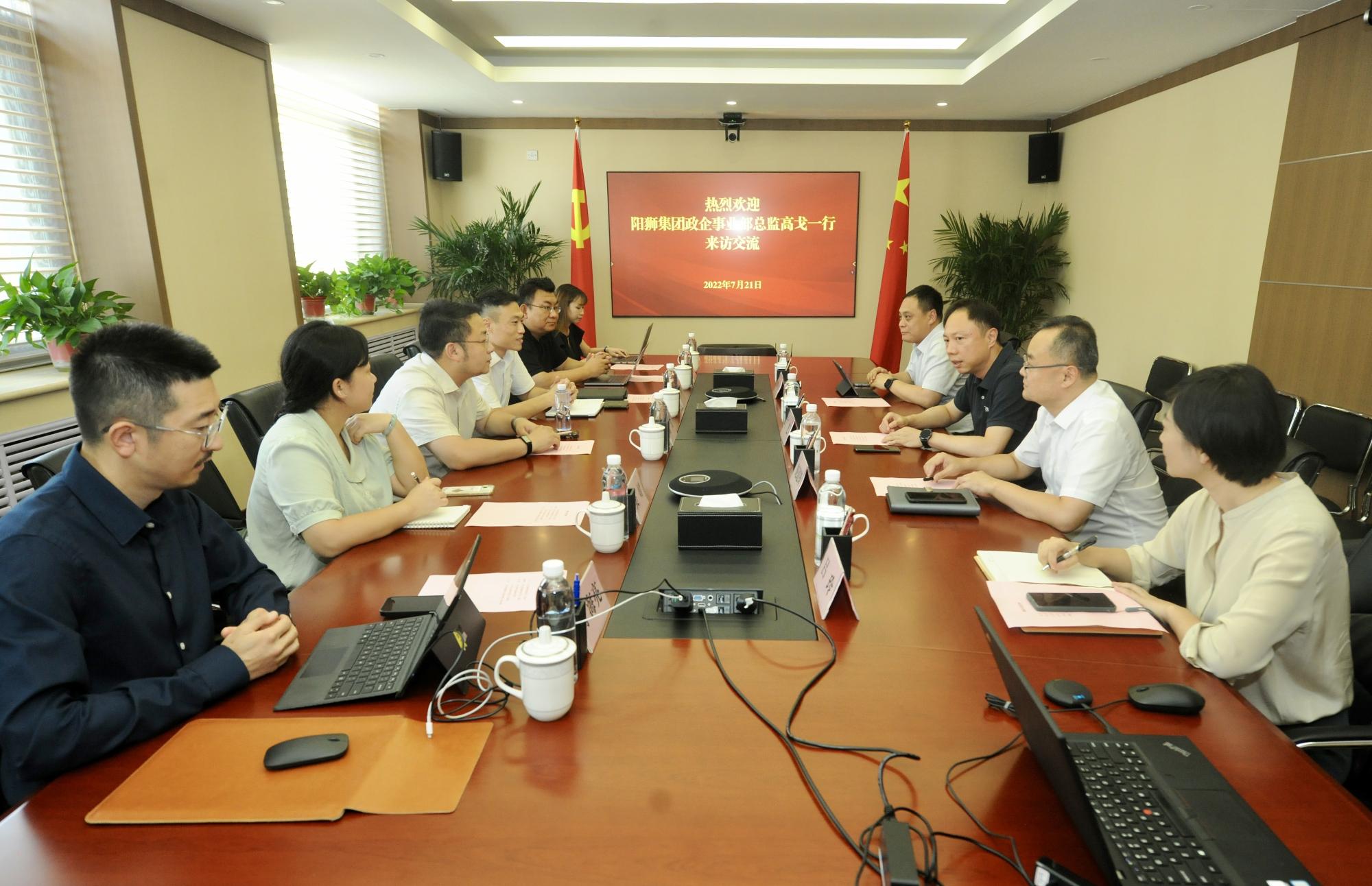 7月21日,陽(yáng)獅集團(tuán)政企事業(yè)部總監(jiān)高戈一行到訪山東文旅集團(tuán),同山東文旅集團(tuán)黨委副書記、總經(jīng)理丁藝座談交流。