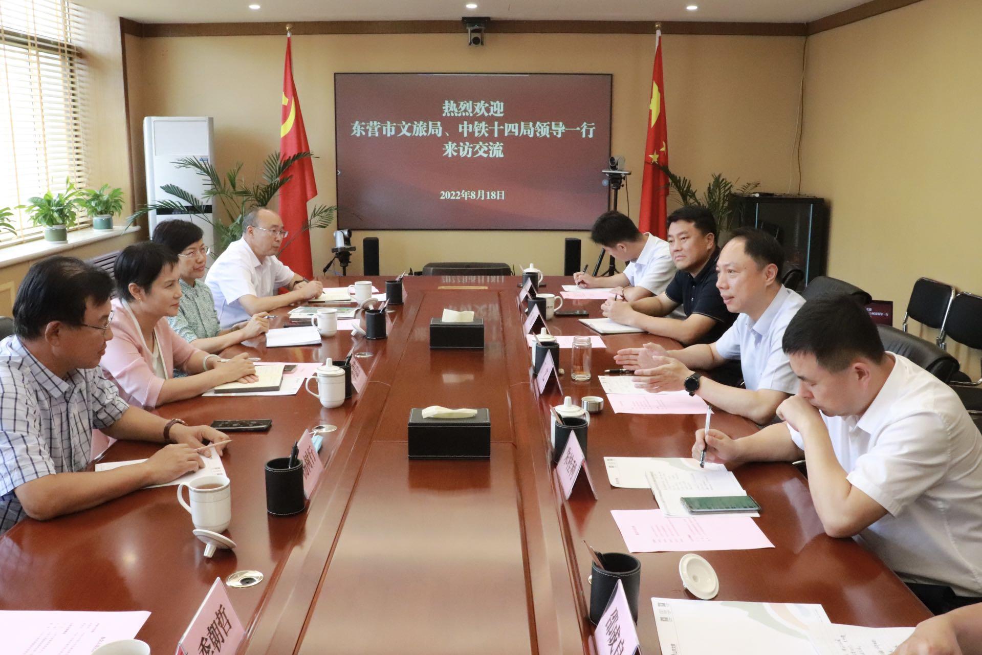 8月18日,東營市文化旅游局局長李慧芬,中鐵十四局山東區(qū)域總部總經(jīng)理朱桂利一行到山東文旅集團(tuán)座談交流,集團(tuán)黨委副書記、總經(jīng)理丁藝出席座談。