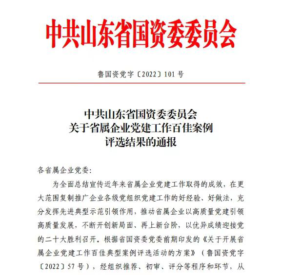 同時,在近期省國資委黨委舉辦的“以高質(zhì)量黨建引領(lǐng)省屬企業(yè)高質(zhì)量發(fā)展”推進(jìn)會上,山東文旅集團(tuán)所屬山東文旅投資集團(tuán)有限公司第二黨支部被頒發(fā)“國企黨的基層組織建設(shè)優(yōu)秀案例”榮譽(yù)證書。