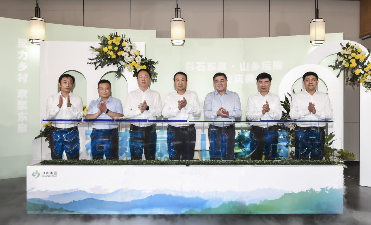 慶典儀式上,高洪雷、張軍、丁藝和歷城區(qū)委副書記孟帥,區(qū)委常委、區(qū)委辦公室主任徐好成,區(qū)委常委、副區(qū)長高博,山東文旅集團(tuán)首席戰(zhàn)略官、山鄉(xiāng)集團(tuán)有限公司(簡稱“山鄉(xiāng)集團(tuán)”)黨委書記、董事長張建峰共同上臺(tái)啟動(dòng)彩石東泉·山鄉(xiāng)后院。