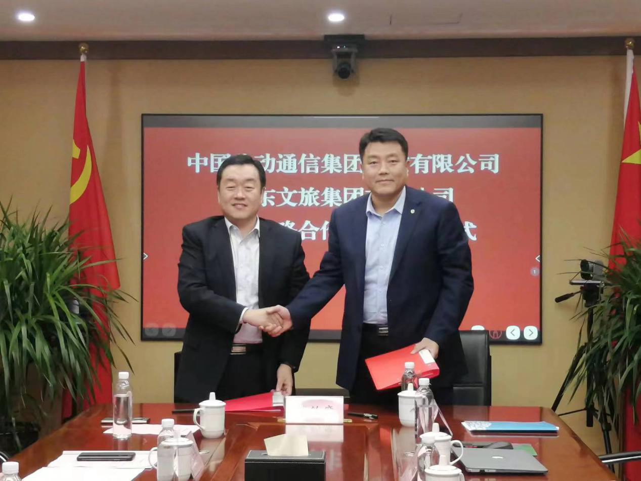 山東文旅集團政策研究部(雙招雙引辦公室)、中國移動山東公司政企客戶中心負(fù)責(zé)人分別代表雙方簽約。