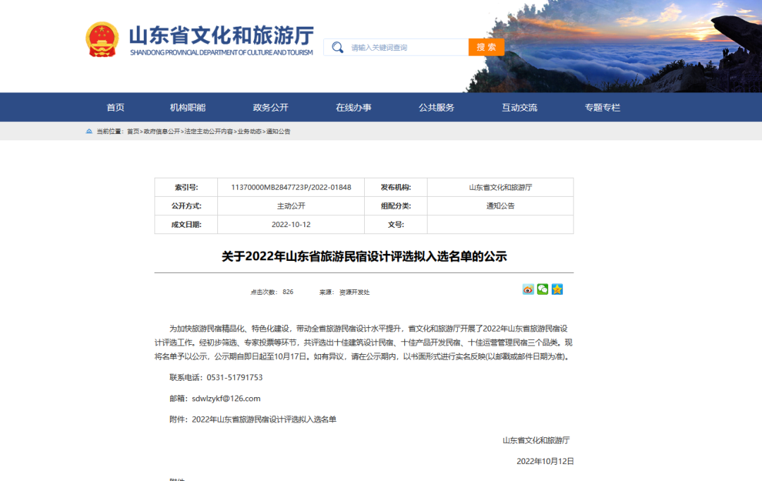 近日,山東省文化和旅游廳公布了2022年山東省旅游民宿設(shè)計(jì)評(píng)選入選名單。經(jīng)初步篩選、專家投票、網(wǎng)站公示等環(huán)節(jié),共評(píng)選出十佳建筑設(shè)計(jì)民宿、十佳產(chǎn)品開發(fā)民宿、十佳運(yùn)營(yíng)管理民宿三個(gè)品類。山鄉(xiāng)集團(tuán)泰山九女峰鄉(xiāng)村振興示范區(qū)“故鄉(xiāng)的云”高端野奢度假酒店成功入選“十佳產(chǎn)品開發(fā)民宿”、泰山九女峰·野有院民宿(原八樓氧心谷)成功入選“十佳運(yùn)營(yíng)管理民宿”。