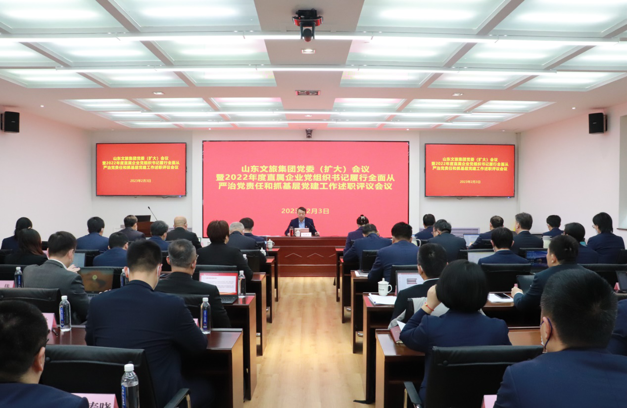 2月3日,山東文旅集團(tuán)黨委召開2022年度黨委(擴(kuò)大)會(huì)議暨直屬企業(yè)黨組織書記履行全面從嚴(yán)治黨責(zé)任和抓基層黨建工作述職評(píng)議會(huì)議。集團(tuán)黨委書記、董事長(zhǎng)高洪雷主持會(huì)議并講話。省國(guó)資委組織與統(tǒng)戰(zhàn)工作處二級(jí)調(diào)研員張艷琳到會(huì)指導(dǎo)。