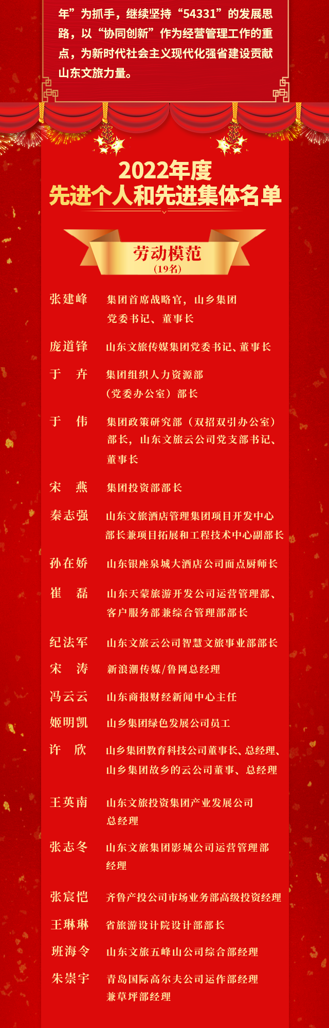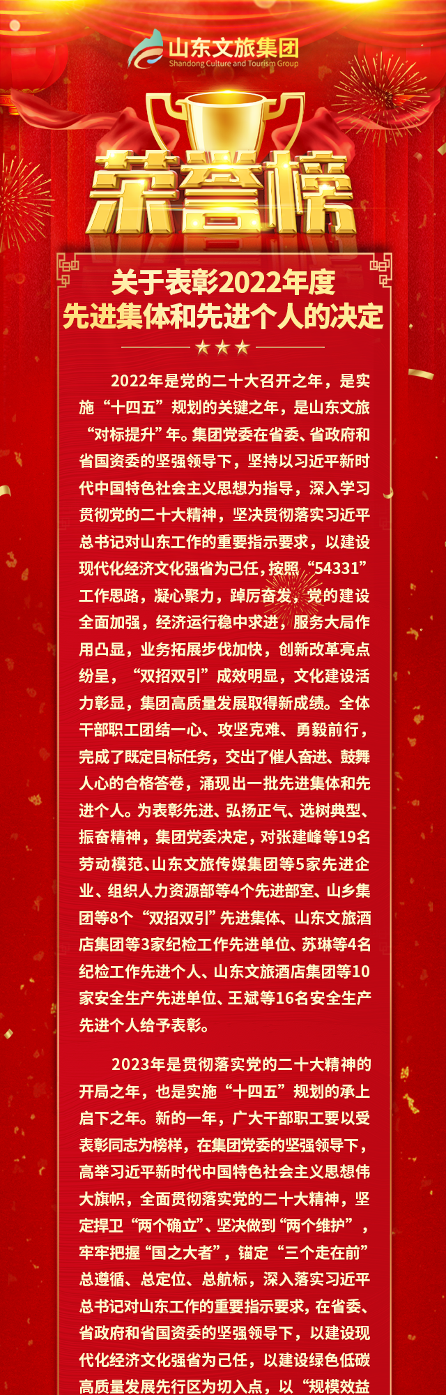 山東文旅集團(tuán)2022年度先進(jìn)集體和先進(jìn)個(gè)人榮譽(yù)榜揭曉