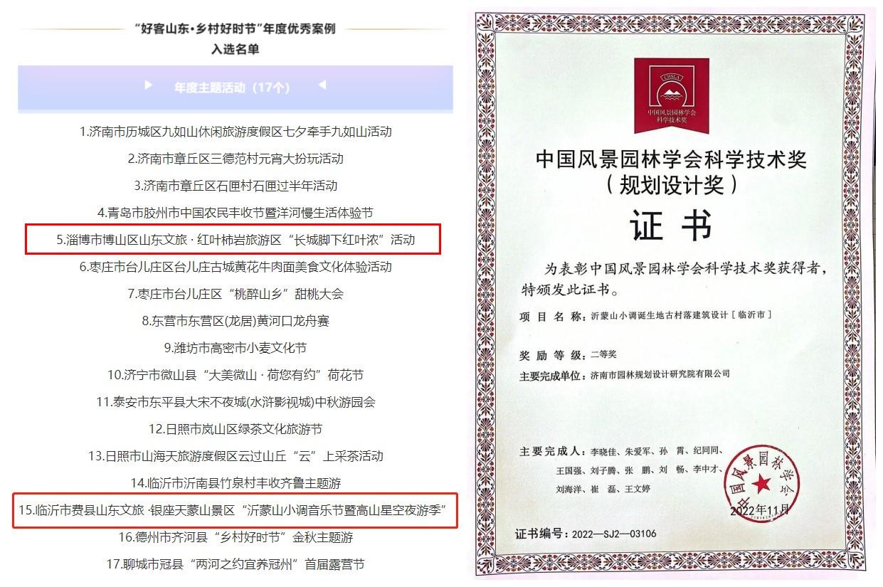 另外,日前公布的2022年度“中國風(fēng)景園林學(xué)會(huì)科學(xué)技術(shù)獎(jiǎng)” 獲獎(jiǎng)名單中,天蒙景區(qū)“沂蒙山小調(diào)誕生地古村落建筑設(shè)計(jì)”獲規(guī)劃設(shè)計(jì)獎(jiǎng)二等獎(jiǎng)。