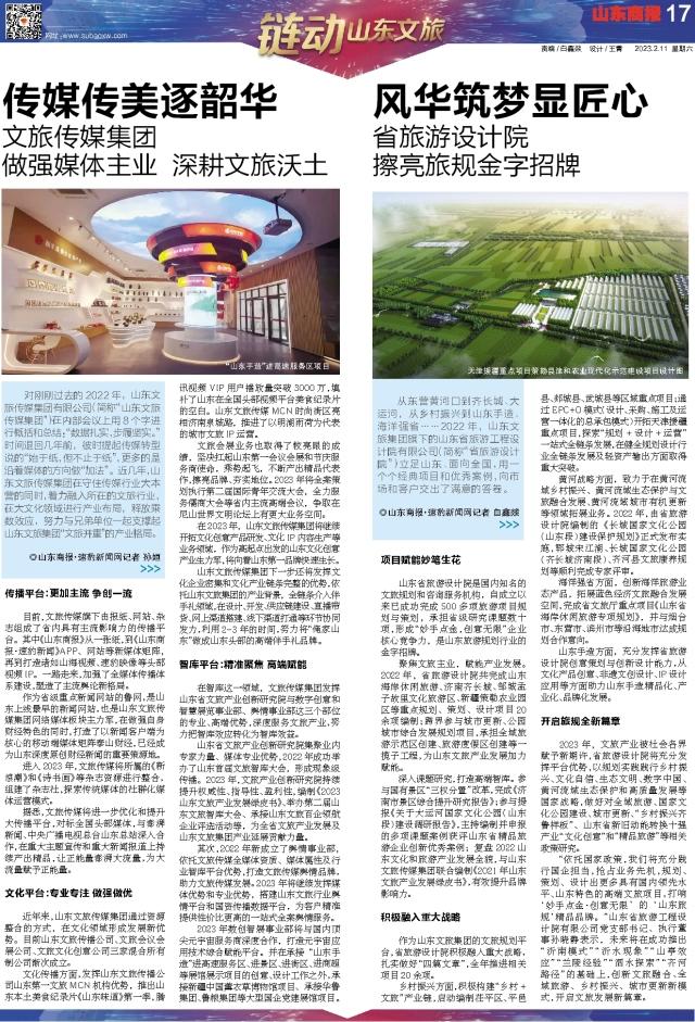 對剛剛過去的2022年,山東文旅傳媒集團有限公司(簡稱“山東文旅傳媒集團”)在內(nèi)部會議上用8個字進行概括和總結(jié):“數(shù)據(jù)扎實,步履堅實?!睍r間退回幾年前,彼時提起傳媒轉(zhuǎn)型說的“始于紙,但不止于紙”,更多的是沿著媒體的方向做“加法”。近幾年,山東文旅傳媒集團在守住傳媒行業(yè)大本營的同時,著力融入所在的文旅行業(yè),在大文化領(lǐng)域進行產(chǎn)業(yè)布局,釋放乘數(shù)效應(yīng),努力與兄弟單位一起支撐起山東文旅集團“文旅并重”的產(chǎn)業(yè)格局。