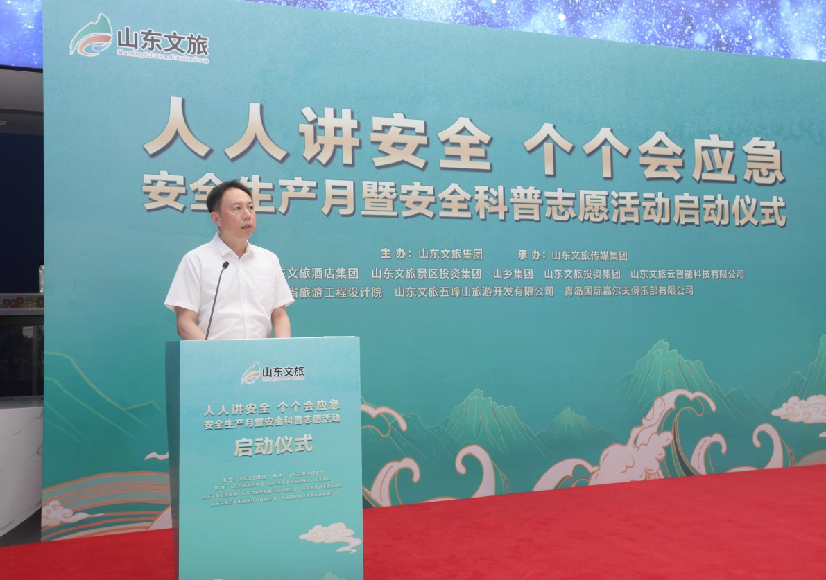 為積極響應第22個“安全生產月”主題活動,傳播安全文化,讓安全理念深入人心,做到“人人講安全,個個會應急”。5月26日上午,山東文旅集團在星輝影城(中海環(huán)宇城店)舉行2023年安全生產月暨安全科普志愿活動啟動儀式。集團黨委副書記、總經理丁藝,山東省文化和旅游廳市場管理處二級調研員司琰出席活動。