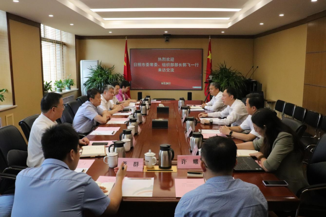 8月28日,日照市委常委、組織部部長郭飛,市委常委、副市長賈剛一行到山東文旅集團座談交流,集團黨委書記、董事長丁藝會見。