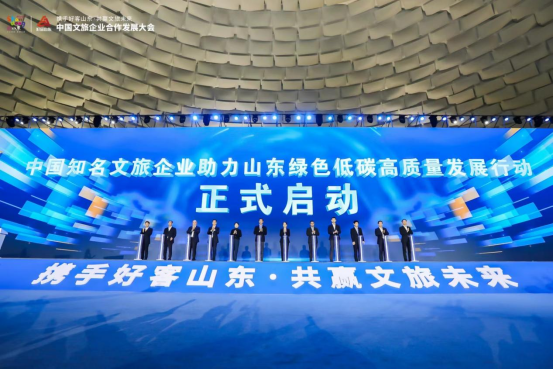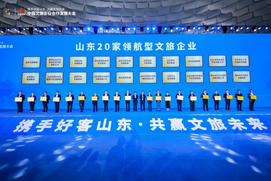 開幕式上,國內(nèi)重點文旅企業(yè)分享了投資山東經(jīng)驗,知名文旅企業(yè)發(fā)布在魯合作需求,視頻發(fā)布山東重點文旅招商項目,為山東20家領航型文旅企業(yè)、山東十佳民營文旅企業(yè)領軍人物授牌。山東文旅集團入選首批20家領航型文旅企業(yè),并在省文旅廳等部門指導下,發(fā)起組建山東文旅企業(yè)聯(lián)盟,涵蓋全省旅游景區(qū)、酒店、文旅集團、文化企業(yè)等近100家企業(yè)。另外,山東文旅集團與國內(nèi)其他11家知名文旅企業(yè)共同啟動中國知名文旅企業(yè)助力山東綠色低碳高質(zhì)量發(fā)展行動。