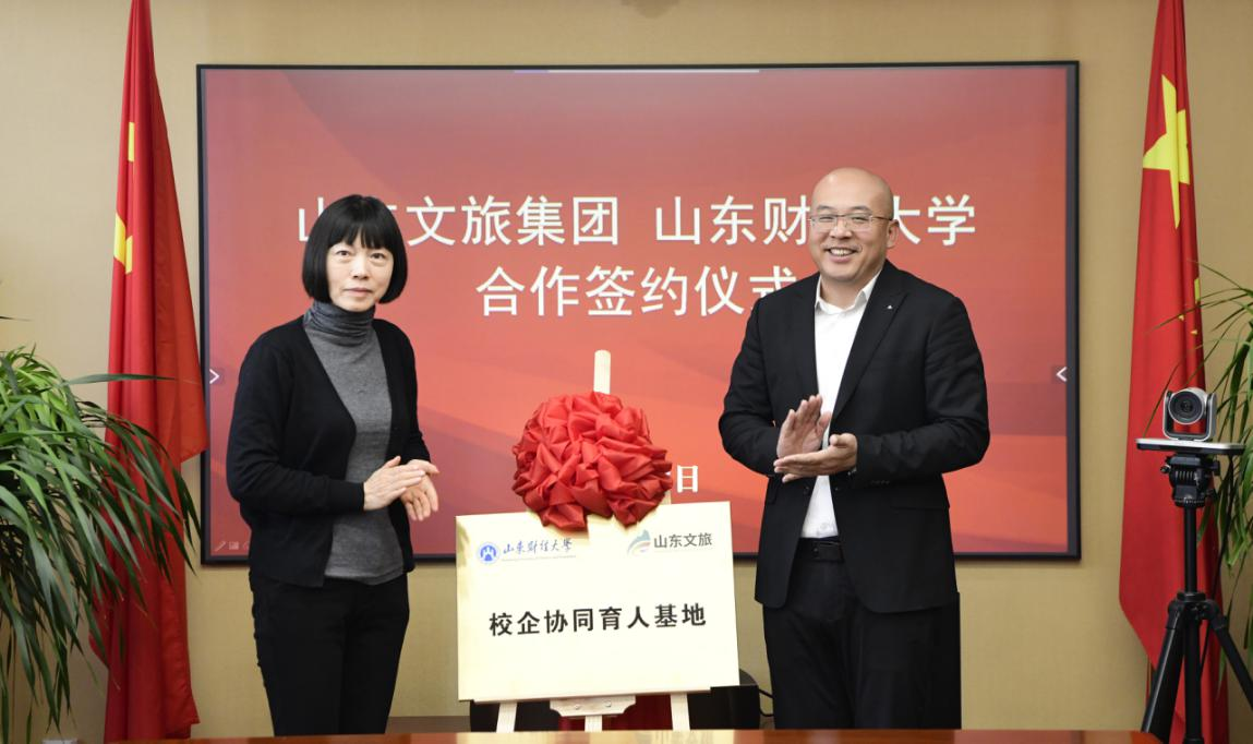 11月13日,山東文旅集團與山東財經(jīng)大學舉行校企合作簽約儀式。山東文旅集團黨委委員、副總經(jīng)理孫超,山東財經(jīng)大學工商管理學院院長蘇昕分別代表雙方簽約,并共同為“校企協(xié)同育人基地”揭牌。