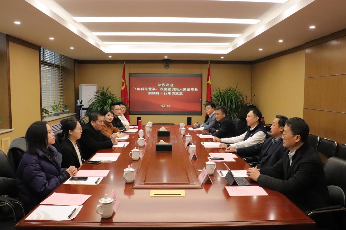 12月14日,飛魚科技董事、廈門歡喜盒文化傳播有限公司(簡稱“歡喜盒公司”)創(chuàng)始人兼董事長姚劍鋒一行到訪山東文旅集團(tuán),集團(tuán)黨委書記、董事長丁藝會(huì)見。