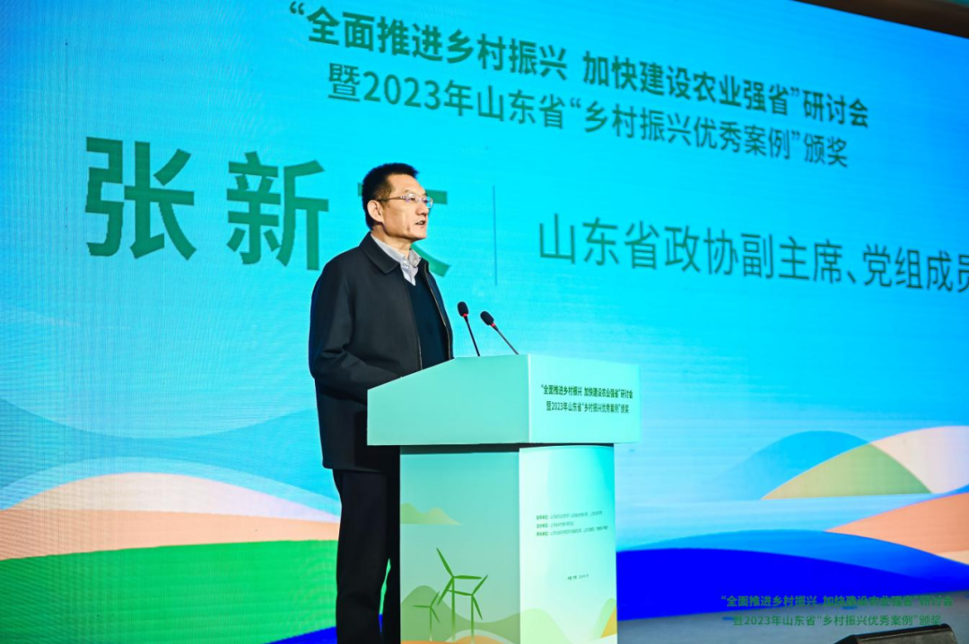 1月18日,由山東省農(nóng)業(yè)農(nóng)村廳(山東省鄉(xiāng)村振興局)、山東社會(huì)科學(xué)院指導(dǎo),山東省鄉(xiāng)村振興研究會(huì)主辦,山東社會(huì)科學(xué)院農(nóng)村發(fā)展研究所、山東文旅集團(tuán)、齊魯晚報(bào)?齊魯壹點(diǎn)承辦的“全面推進(jìn)鄉(xiāng)村振興 加快建設(shè)農(nóng)業(yè)強(qiáng)省”研討會(huì)暨2023年山東省“鄉(xiāng)村振興優(yōu)秀案例”頒獎(jiǎng)大會(huì)在濟(jì)南舉行。省政協(xié)副主席張新文出席會(huì)議并致辭;省政協(xié)常委、文化文史和學(xué)習(xí)委員會(huì)副主任、山東省鄉(xiāng)村振興研究會(huì)會(huì)長(zhǎng)郝憲印,省農(nóng)業(yè)農(nóng)村廳二級(jí)巡視員孫明河,山東社會(huì)科學(xué)院黨委副書(shū)記韓建文,山東文旅集團(tuán)黨委委員、副總經(jīng)理喬衛(wèi)東等參加會(huì)議。